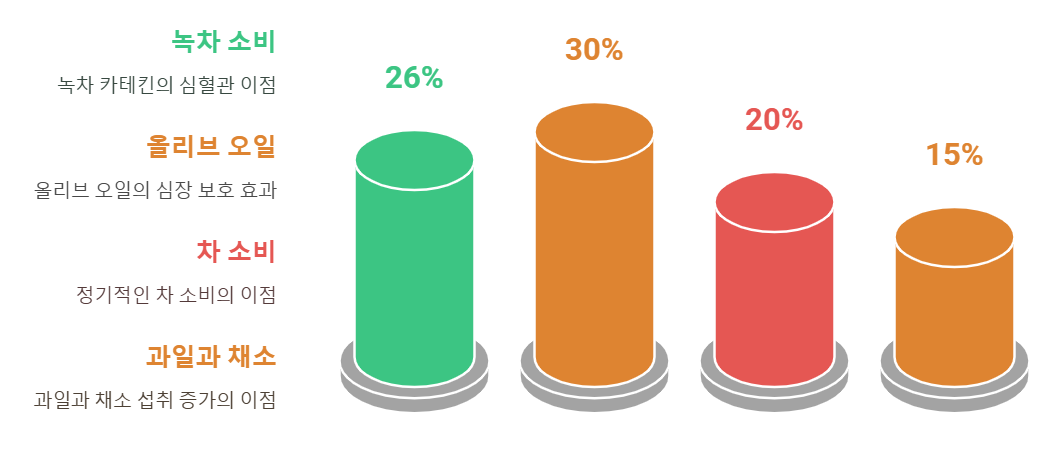 심혈관에 좋은 음식과 차에 대한 연구 데이터