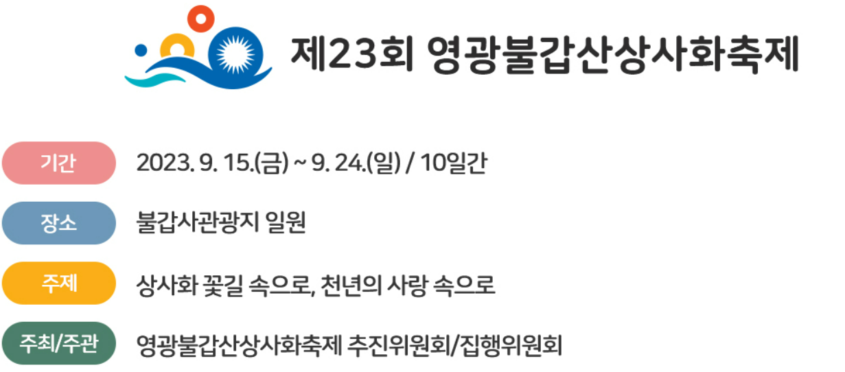 대한민국 대표 가을 꽃 축제로 영광9경 중 하나인 영광군 불갑산에서 개최, 다양한 전시, 체험 프로그램을 준비하고 있는 상사화축제